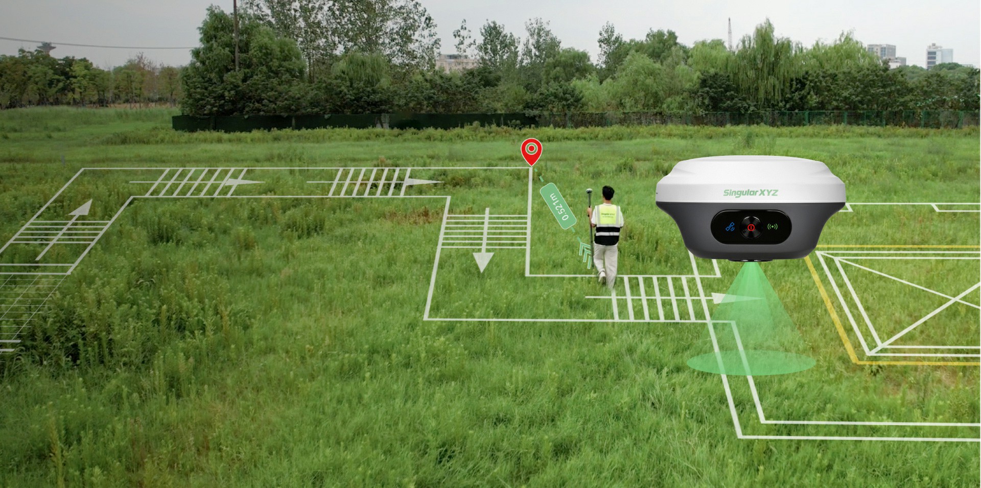 Orion ONE-AR’s visual AR stakeout allows surveyors to locate stakeout points directly in the real world, improving accuracy by over 50% compared to traditional methods—no prior experience needed.