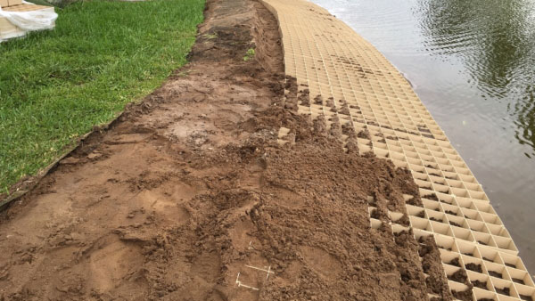 The Erosion Control Panel (ECP) stabilizes soils on shoreline embankments, creating a low-maintenance and structurally stable environment that ensures long-term sustainability. The ECP system minimizes erosion caused by water contact, surface flow, and wave action.